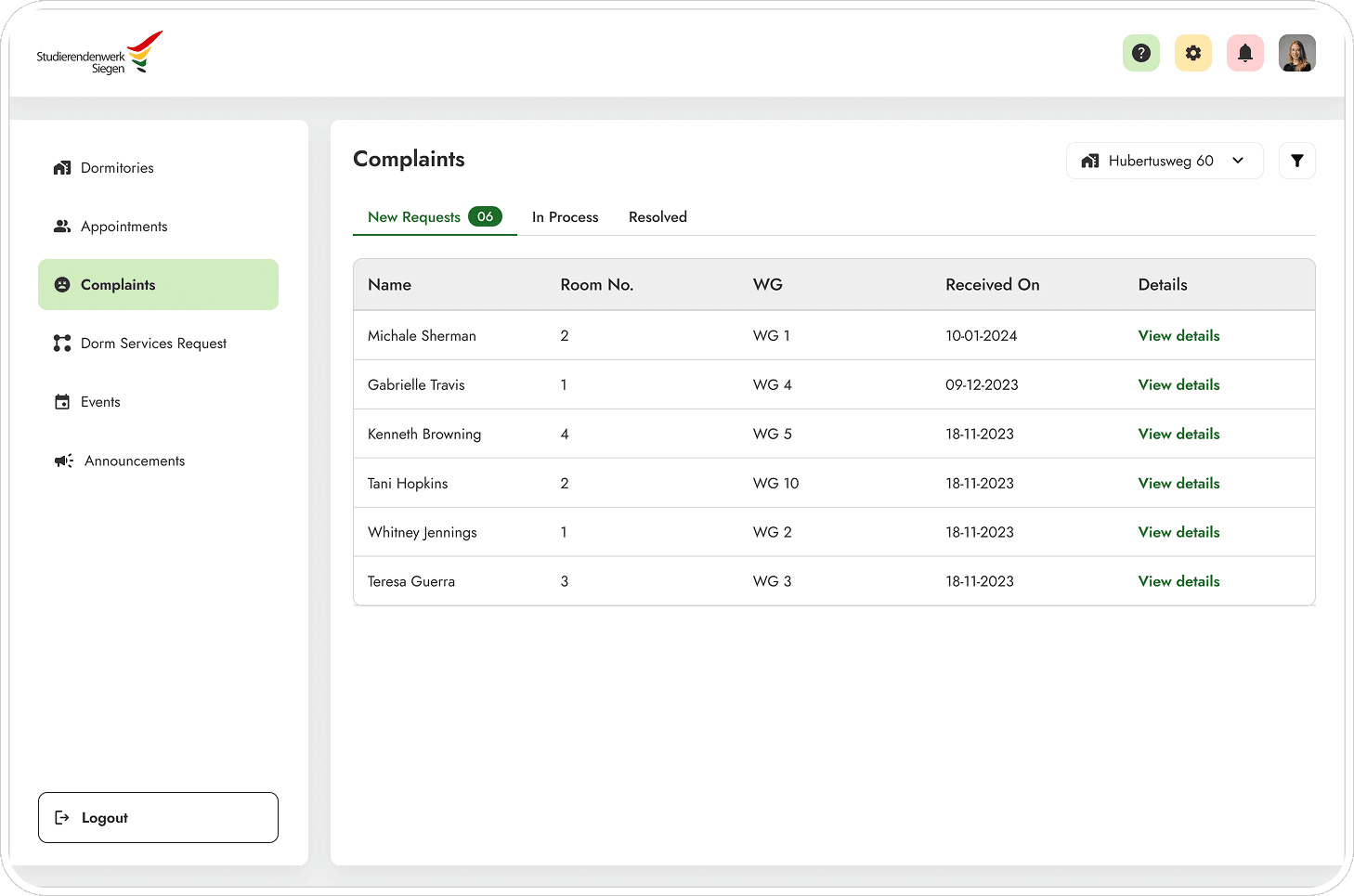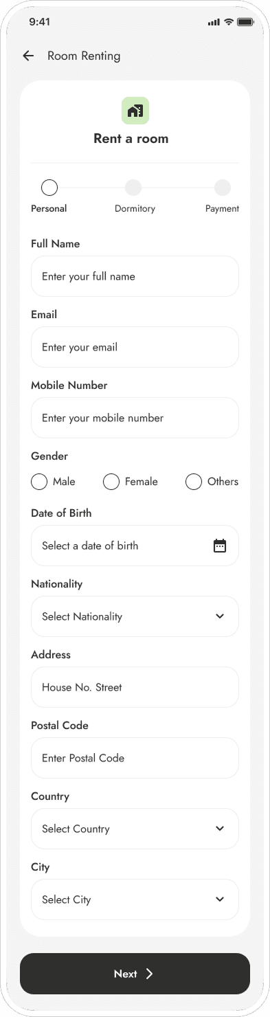 The application process was redesigned to be fully self-contained students could browse available rooms with photos and details, submit applications with document uploads, and most importantly, track their own status with a clear timeline. No more calling to find out if they were even in the queue. This directly addressed the black box experience that was driving the most anxiety and the most redundant administrative inquiries.