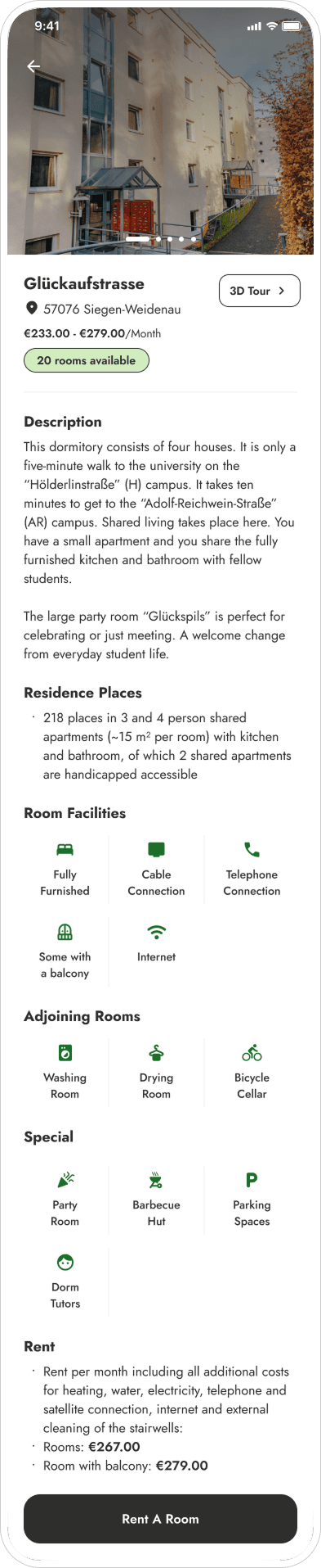 Studierendenwerk Siegen managed all dormitory operations - room applications, maintenance requests, community communications, entirely through email and office visits. I led the end-to-end research and design of a mobile app and admin system to replace this with self-service digital workflows. Through research with 52 students across multiple dormitories, I identified a single root cause underlying every frustration, and designed a solution around it.